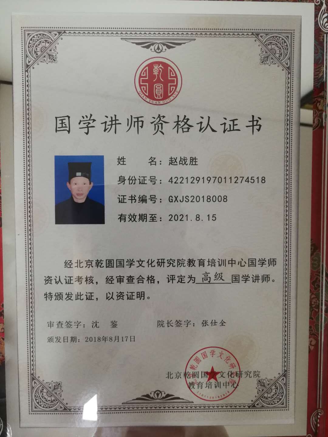 国学讲师资格认证书